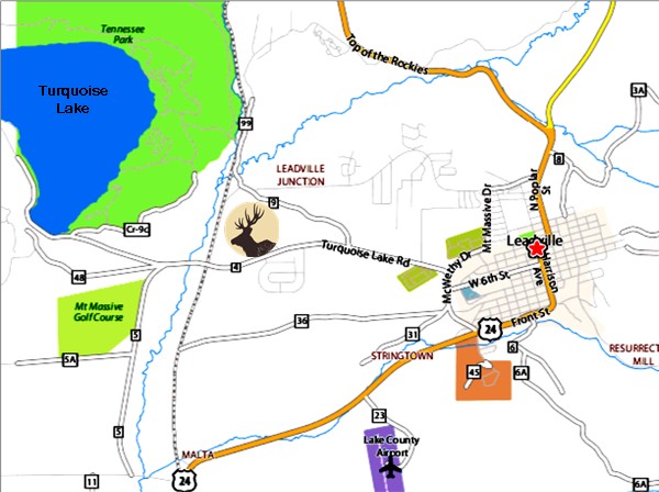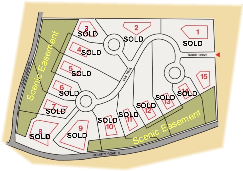 ( Note that the Elk Trail subdivision roads are new and are not yet indexed on any of the map search engines. Until they are, a "399 Tabor Drive, 80461" address may be used for searching. )